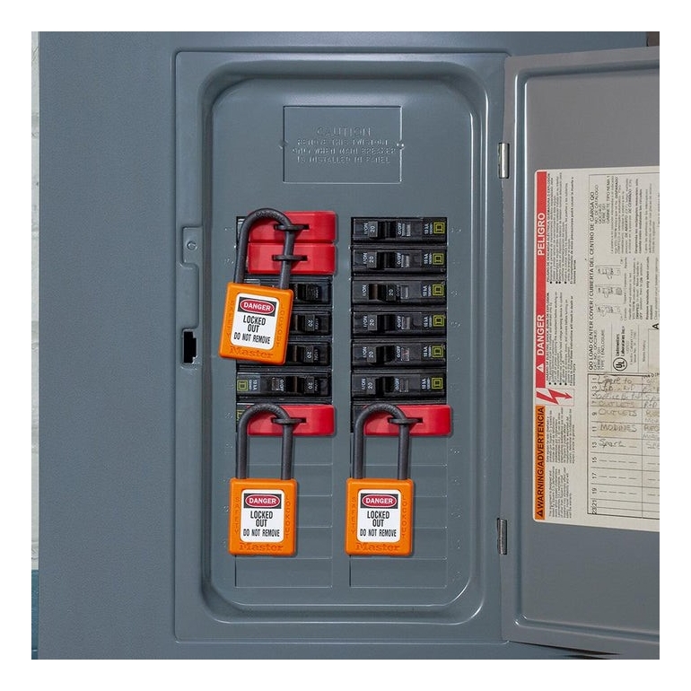 Brady Dispositivo para bloqueo de interruptores multipolares 120/220V Master Lock Bloqueo ajustable tipo cable de 6 pies x 5/32"