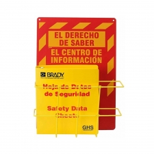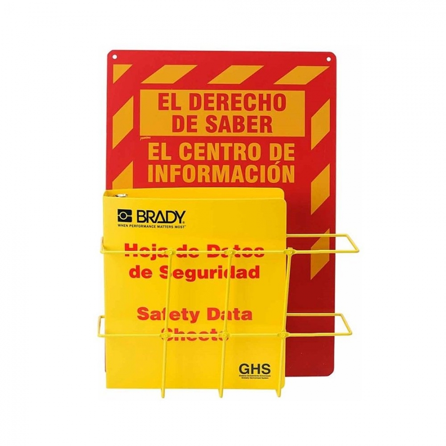 - El centro para el Sistema Globalmente Armonizado (GHS) combina una carpeta para Hojas de Datos de Seguridad (HDS) con un centro de información, rojo y amarillo, altamente visible.