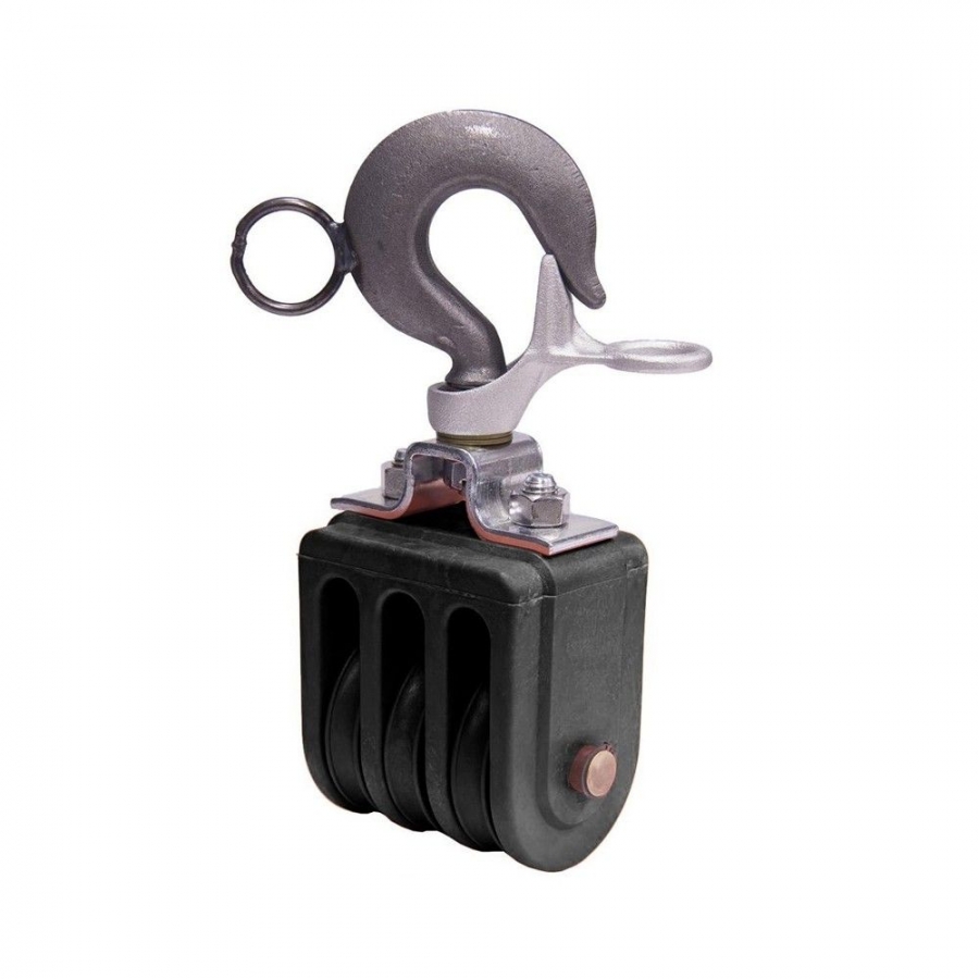 - Polea de Nylon reforzado con fibra de vidrio. El eje es de bronce de silicio y los cojinetes de la polea son de bronce impregnado de aceite.