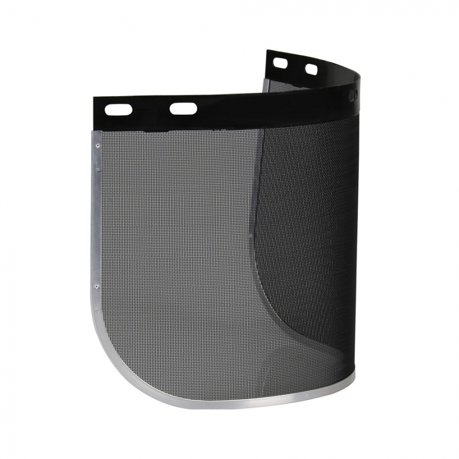 - Esta resistente visera de malla de alambre brinda protección contra escombros y partículas proyectadas.