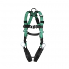 - El anillo en D para el pecho permite que el arnés se use con un sistema para subir escaleras para brindar protección contra caídas si el usuario se resbala mientras sube o baja una escalera o una estructura alta.