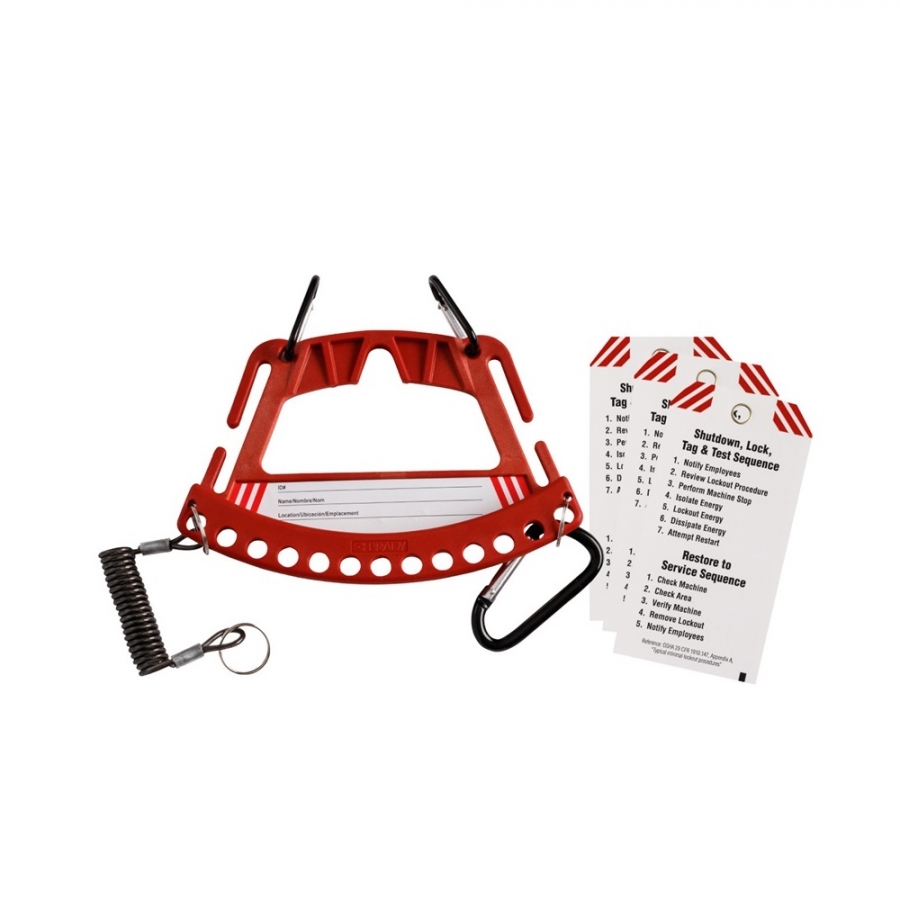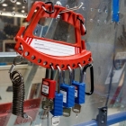 - El transportador tiene capacidad para 12 candados de seguridad y se puede sujetar fácilmente a clips de cinturón, el diseño permite además el montaje en pared o máquinas.