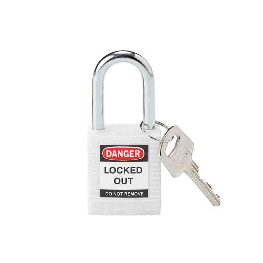Candado de bloqueo de blanco, cuerpo no conductor con arco de metal "Safekey"