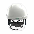 - Casco de seguridad de electricista ligero, equilibrado, sin ventilación, con suspensión tipo perilla (ratchet) Fas-Trac® III de 6 puntos y careta certificada para la protección contra arco eléctrico GS-ET-29 Clase 1.