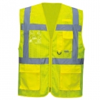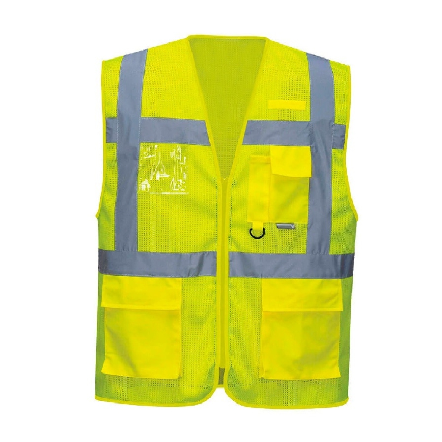 - Tejido respirable de malla poliéster, de alta visibilidad, en color amarillo o naranja fluorescente.
