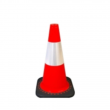 Cono de señalización de 18'' semiflexible con base negra y cinta reflectiva