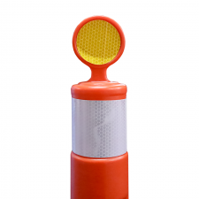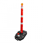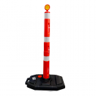 Delineador vial tipo poste con base rellenable y cintas reflectivas