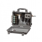 - Ensamblado dentro un estuche duradero y portátil. Manijas integradas para mayor seguridad.
