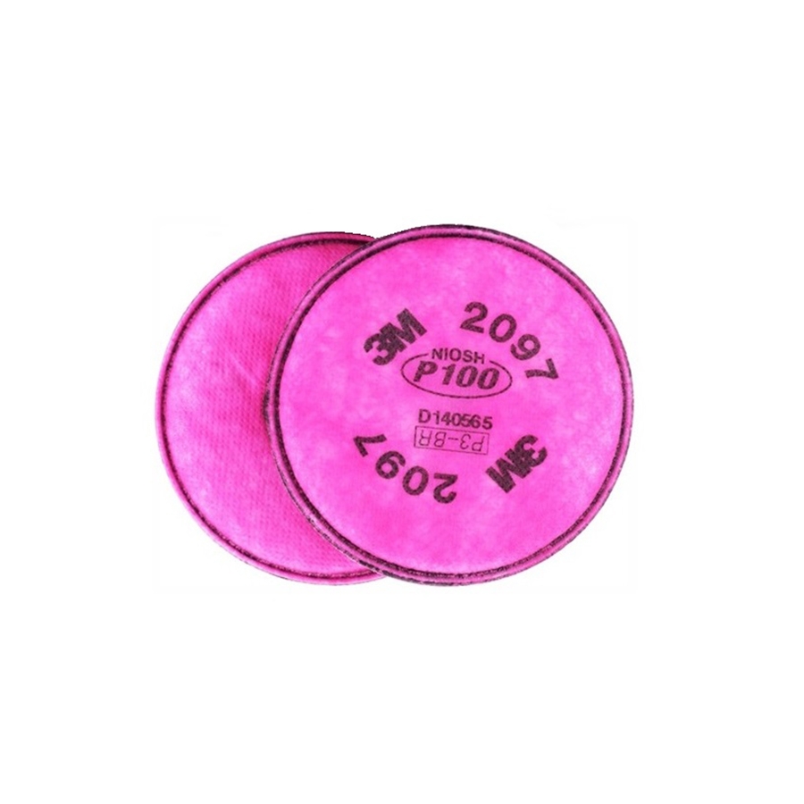 Filtro de partículas protección P100: nivel de eficiencia mínima de filtración 99.97% o mayor, contra partículas sólidas y aerosoles líquidos, tanto los de base aceitosa, cómo no aceitosa.