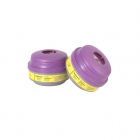 - Cartucho para protección contra vapores orgánicos y gases ácidos (cloro, ácido clorhídrico, dióxido de azufre, ácido fluorhídrico y dióxido de cloro y formaldehído) y filtro para partículas P100.
