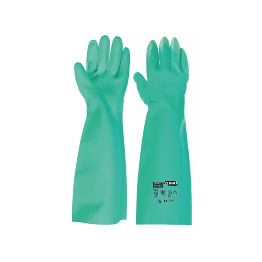 - La línea de guantes para protección química Chem-Tech de Vangard, ofrece guantes fabricados en 100% nitrilo, de diferentes longitudes y espesores; con palma “Sandpatch North-Armour” acabado arenado que mejora el agarre y a su vez disminuye la adherencia de suciedad.