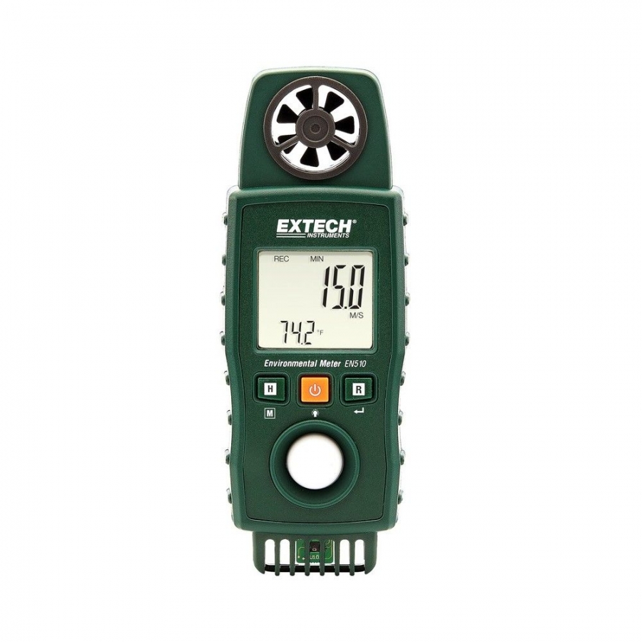 - Conveniente medidor ambiental 10 en 1, mide la velocidad del aire, flujo de aire, la temperatura del aire, la temperatura del tipo K, el índice de calor, la humedad, bulbo húmedo, punto de rocío, nivel de viento y el nivel de luz.