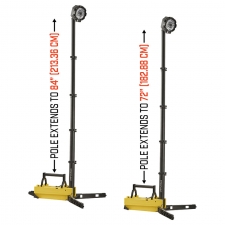 - Cuenta con un cuello giratorio de 90° para iluminar los lugares más apartados y el poste telescópico se extienden hasta 72" o 84" en pocos segundos, pueden resistir 40mph de viento continuo en todas las direcciones.
