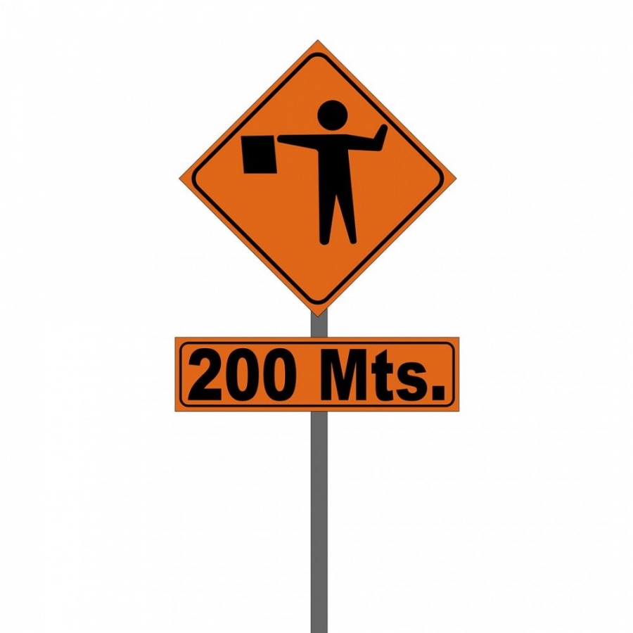 • Letrero de obra tipo poste alta intensidad prismático con retazo (Banderillero)