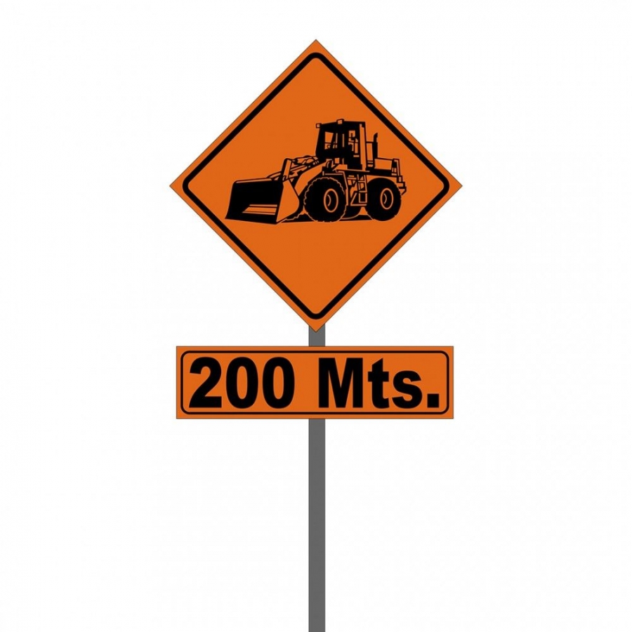 • Letrero de obra tipo poste alta intensidad prismático con retazo (Maquinaria Pesada)