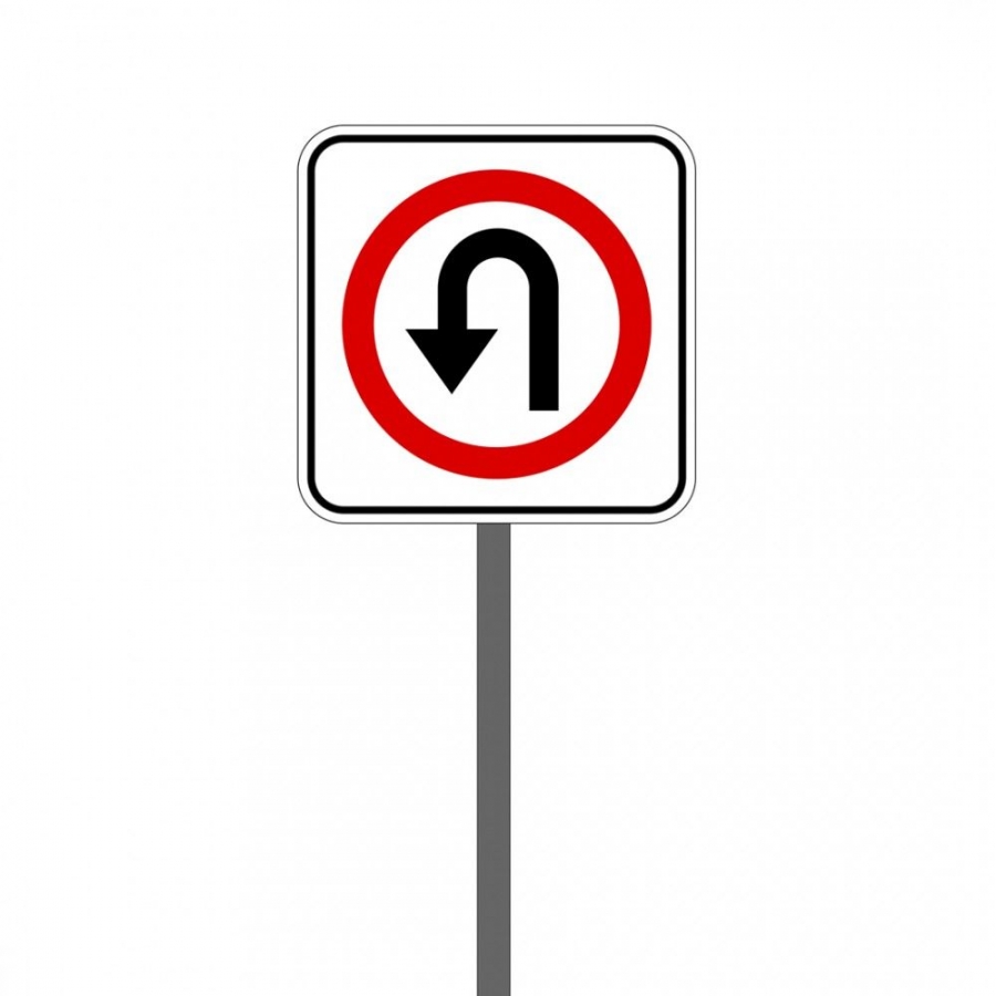 Letrero reglamentario tipo poste en diamante cubo (PROHIBIDO GIRAR EN U)