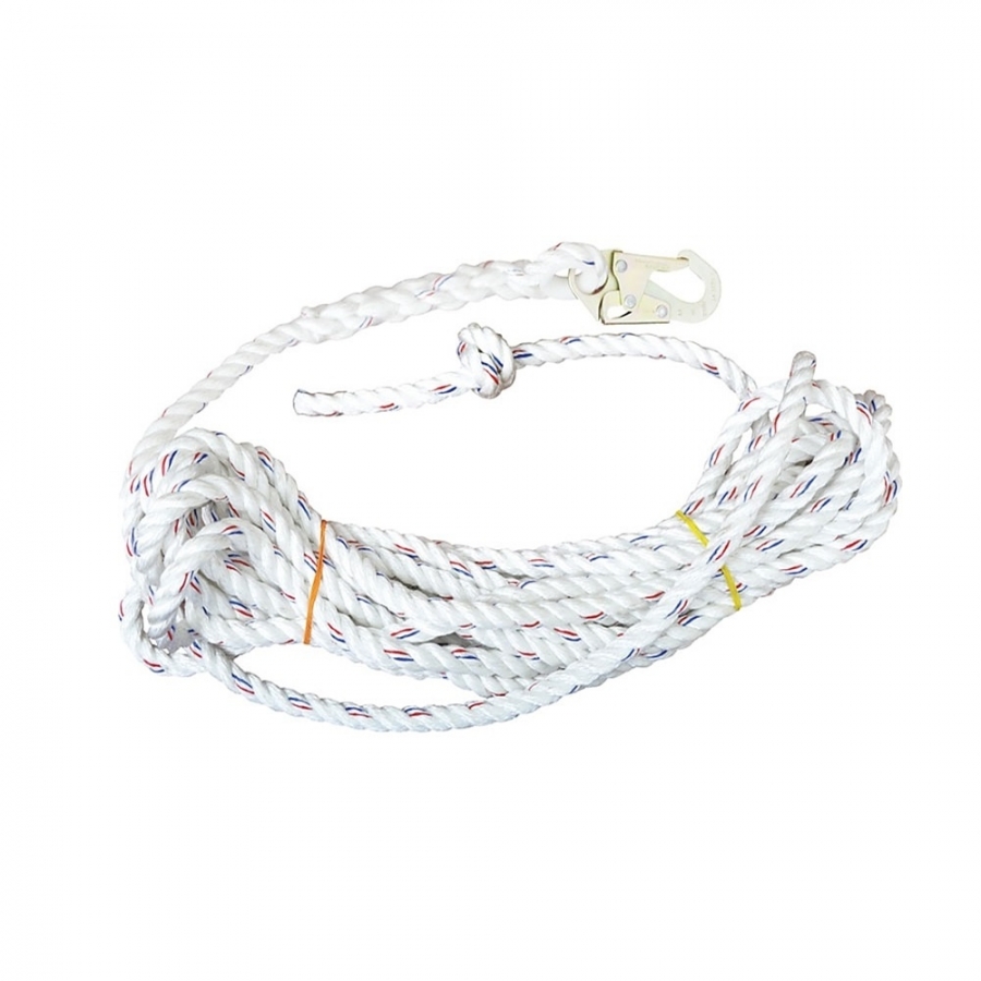 - Línea de vida de cuerda trenzada Polydac, material de alta resistencia a la humedad, a la abrasión y de bajo alargamiento.