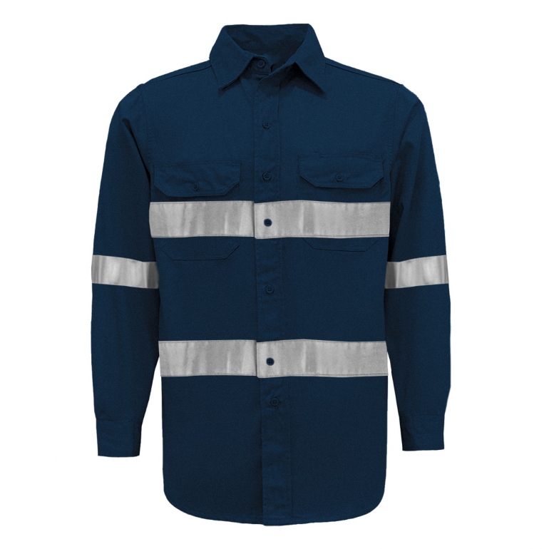 Camisa azul manga larga 100% algodón con cinta reflectiva gris