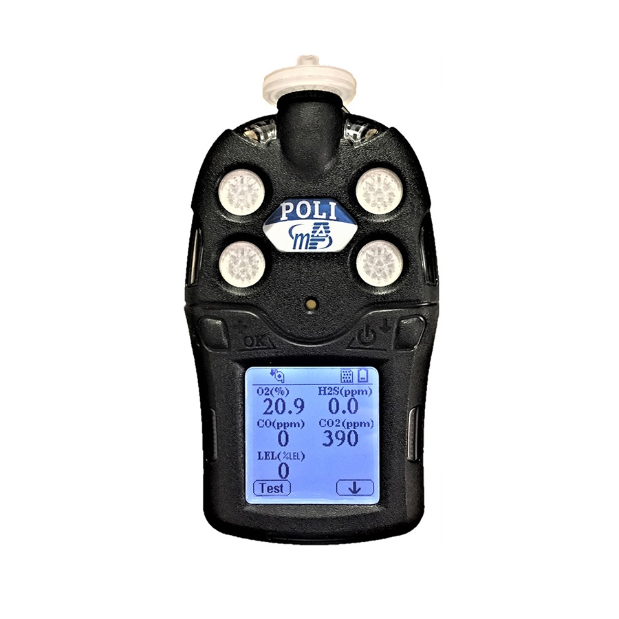 - El detector de gas POLI MP400P es un detector de gas con bomba interna de 4 para la seguridad de los trabajadores en lugares peligrosos, con sensores de oxígeno, combustible, monóxido de carbono y sulfuro de hidrógeno.