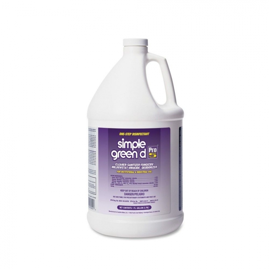 - Simple Green Pro 5® es un desinfectante de grado hospitalario registrado por la EPA, conocido por su alto rendimiento. El concentrado altamente versátil es un desinfectante, limpiador, fungicida, virucida y desodorizante, todo en un solo paso.