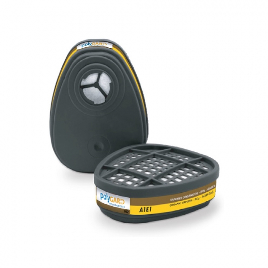 - Filtro aprobado para la protección contra vapores orgánicos, anhídrido sulfuroso (SO2) y gases ácidos, compatible con las líneas de respiradores Polygard S 600 y FFS680.