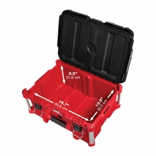 - Parte del sistema de almacenamiento modular más versátil y más durable de la industria, la caja de herramientas PACKOUT™ de Milwaukee está construida de polímeros resistentes al impacto, con esquinas metálicas reforzadas.