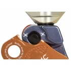 - La platina lateral pivotante patentada permite la rápida instalación de la cuerda sin que sea necesario el desmonte del mosquetón.