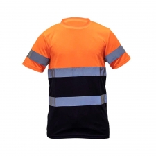 - Suéter de trabajo de alta visibilidad, manga corta, cuello estilo redondo para mayor comodidad.