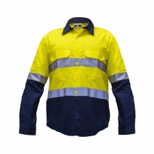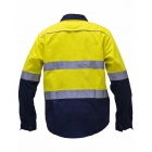 Camisa bicolor (azul/amarillo) 100% algodón con cinta reflectiva gris y ventilación