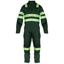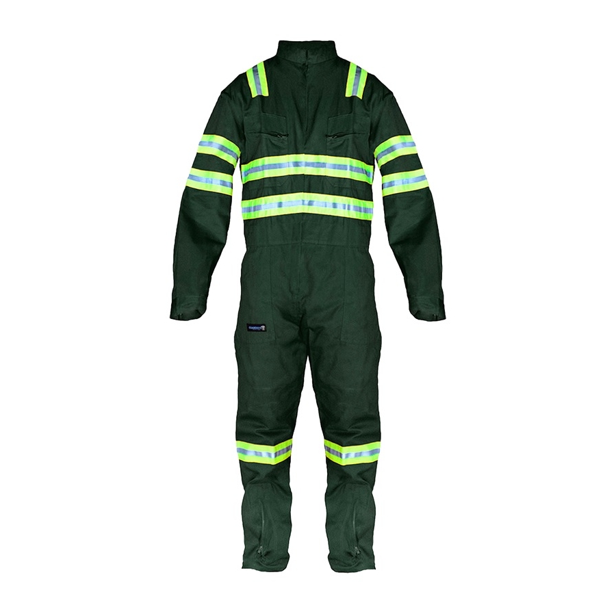 Overol manga larga 100% algodón con cinta reflectiva bicolor verde-gris de 2.5"