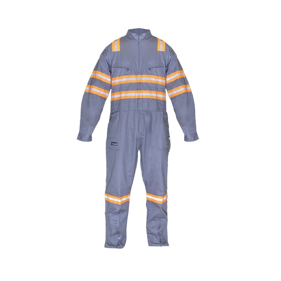 Overol manga larga 100% algodón con cinta reflectiva bicolor naranja-gris de 2.5"