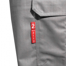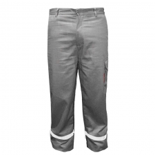 Pantalón gris con cinta reflectiva, resistente a la llama ATPV 8.2 cal/cm²