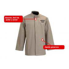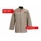 - El traje está hecho de algodón tratado, resistente al fuego y con clasificación de arco.