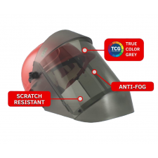 - El conjunto de traje contra arco eléctrico incluye un casco rígido y protector True Color Grey, pasamontañas, mono y bolsa de almacenamiento. El pasamontañas y el mono están hechos de algodón tratado resistente al fuego.
